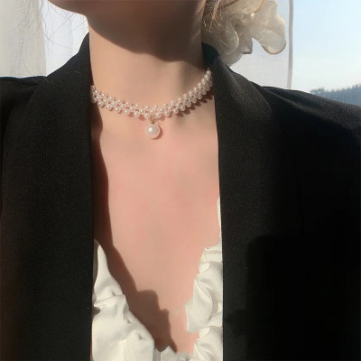 قلادة عنق منسوجة من اللؤلؤ للنساء ، سلسلة ترقوة ، تصميم كوري جنوبي ، نمط صيفي ، جديد