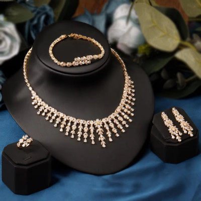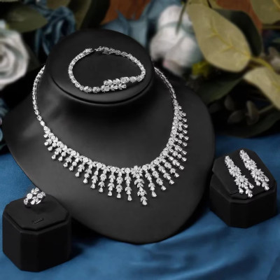 BrideTalk طقم مجوهرات نسائي رائع وبسيط مكون من 4 قطع مكعب زركونيا عالي الجودة في المملكة العربية السعودية إكسسوارات مجوهرات الزفاف